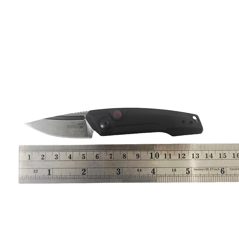 Model:KS 9000 Overall length: 205mm Blade length: 8.2cm Blade width: 1.7cm Blade thickness: 3mm Surface: Stone Washed Blade material:D2 Handle material: 6061 T6 aluminum alloy + anodized